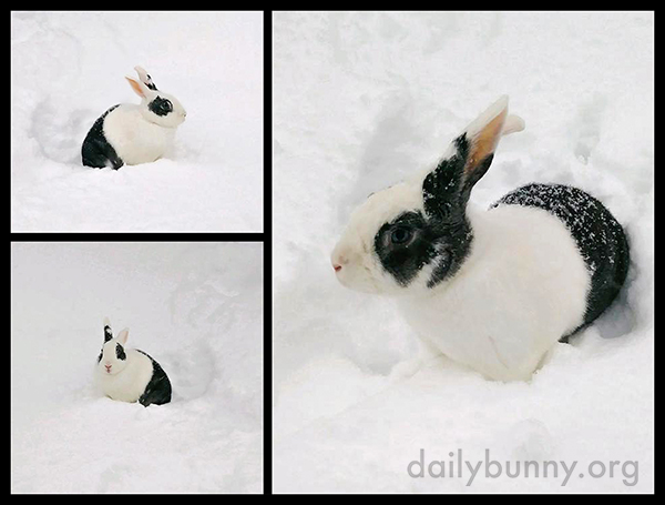 Thanks, Sara and bunny Thor! Sara writes, "Here is our bunny Thor in the snow in Buffalo, NY. This is his 6th winter and we always take him out for the first snowfall. Isn't he adorable :)"