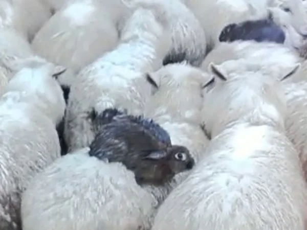 Wild Rabbits Hitch a Ride on Their Sheep Friends to Escape a Flood