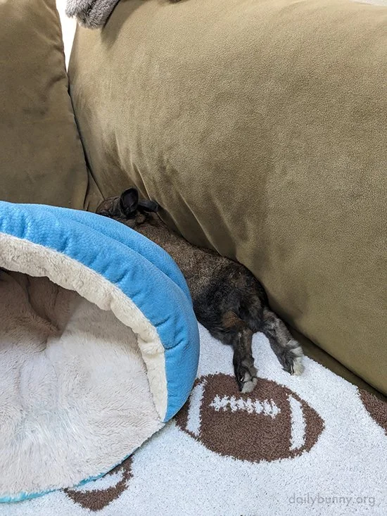 Happy Bunday! Thanks, Dianne, Bruce, and bunny Pumpkin! Dianne writes, “Pumpkin [is] watching college football games with us humans, we are Ohio State and Notre Dame fans. Pumpkin decides to get comfy and takes a nap. Too much stress.”