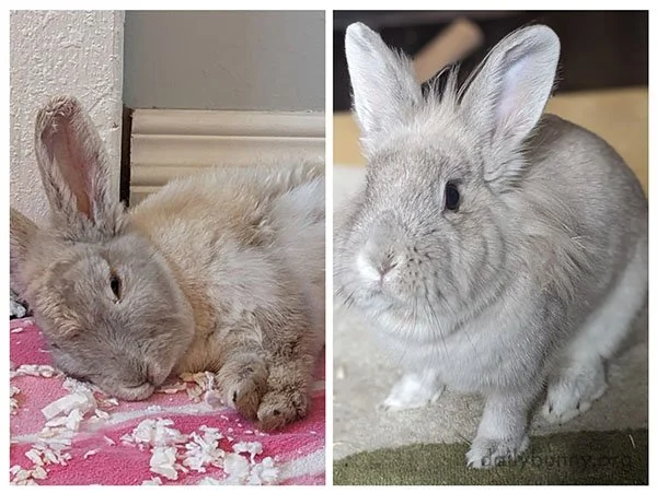 Thanks, Ernestina and bunny Clover! Ernestina writes, “Here is Clover in a before my daughter and son in law found her and after.”